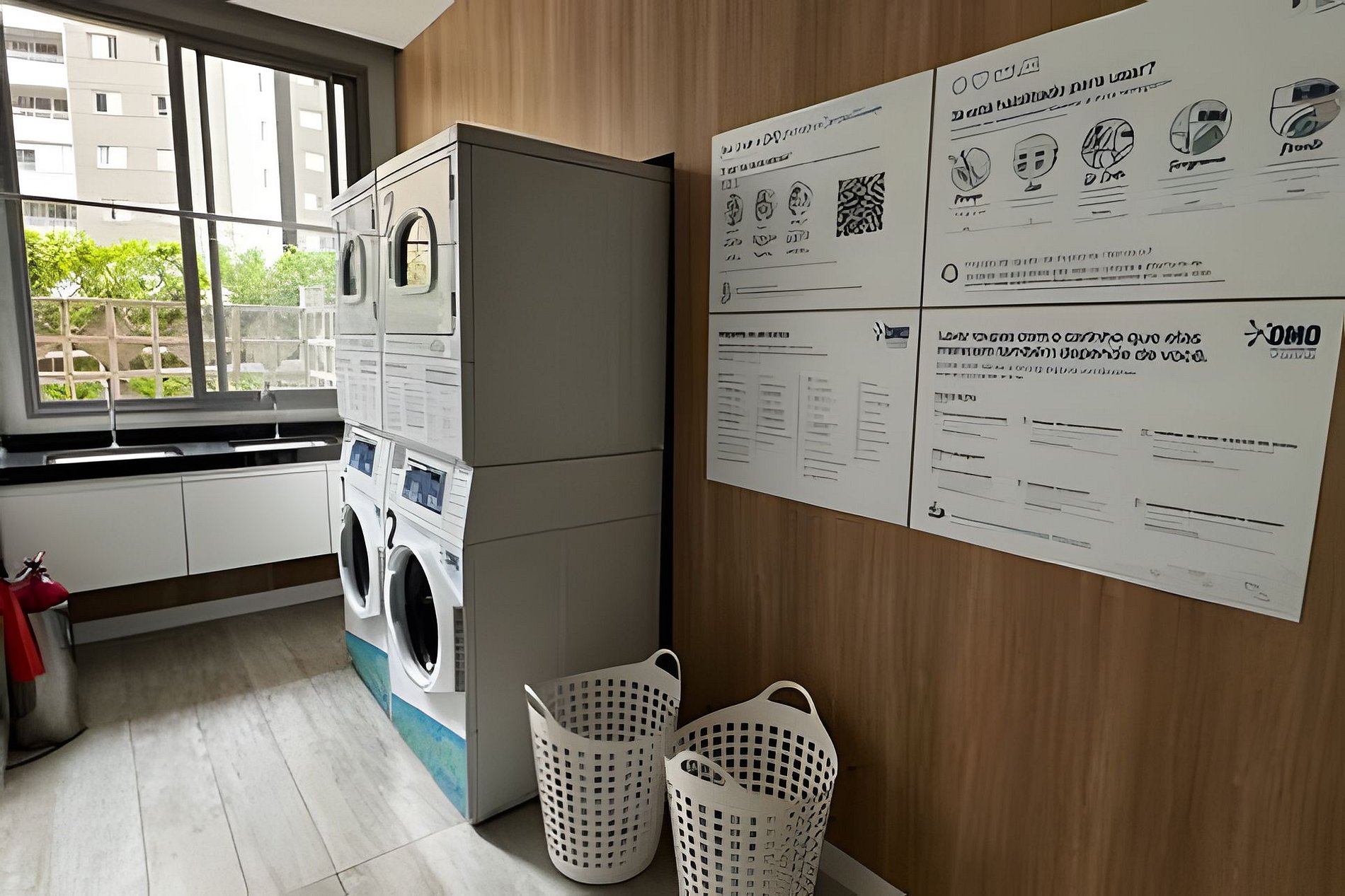 ▷ Temos lavanderia OMO disponível no prédio, que poderá ser usada via aplicativo (valores variam de acordo com o tipo de lavagem e secagem).