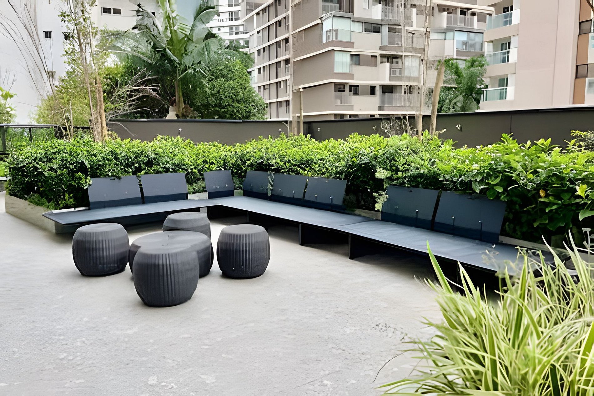 ᐅ Piscina de borda infinita com vegetação no Rooftop