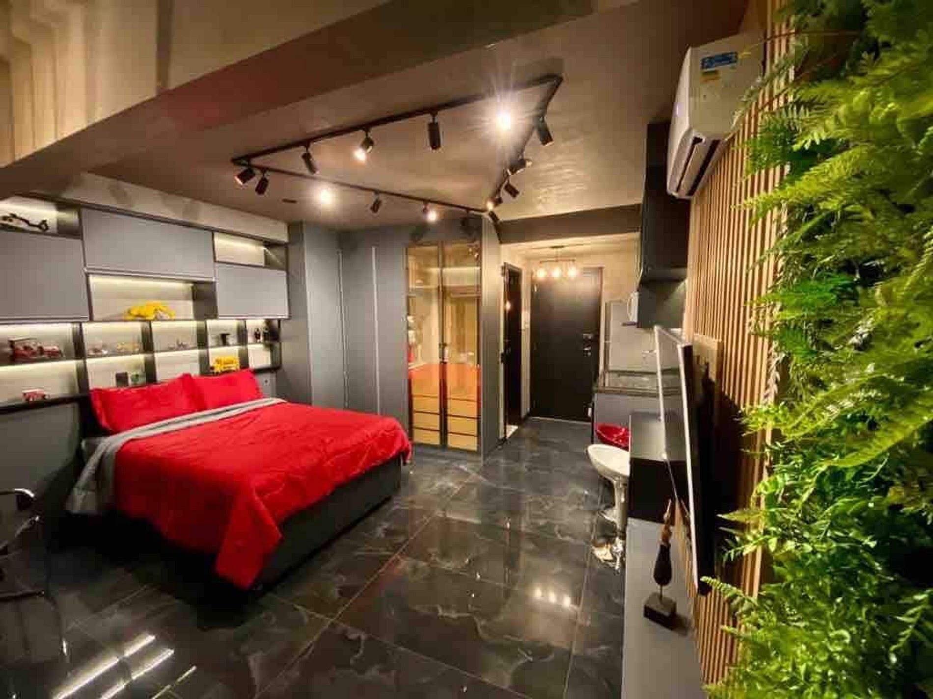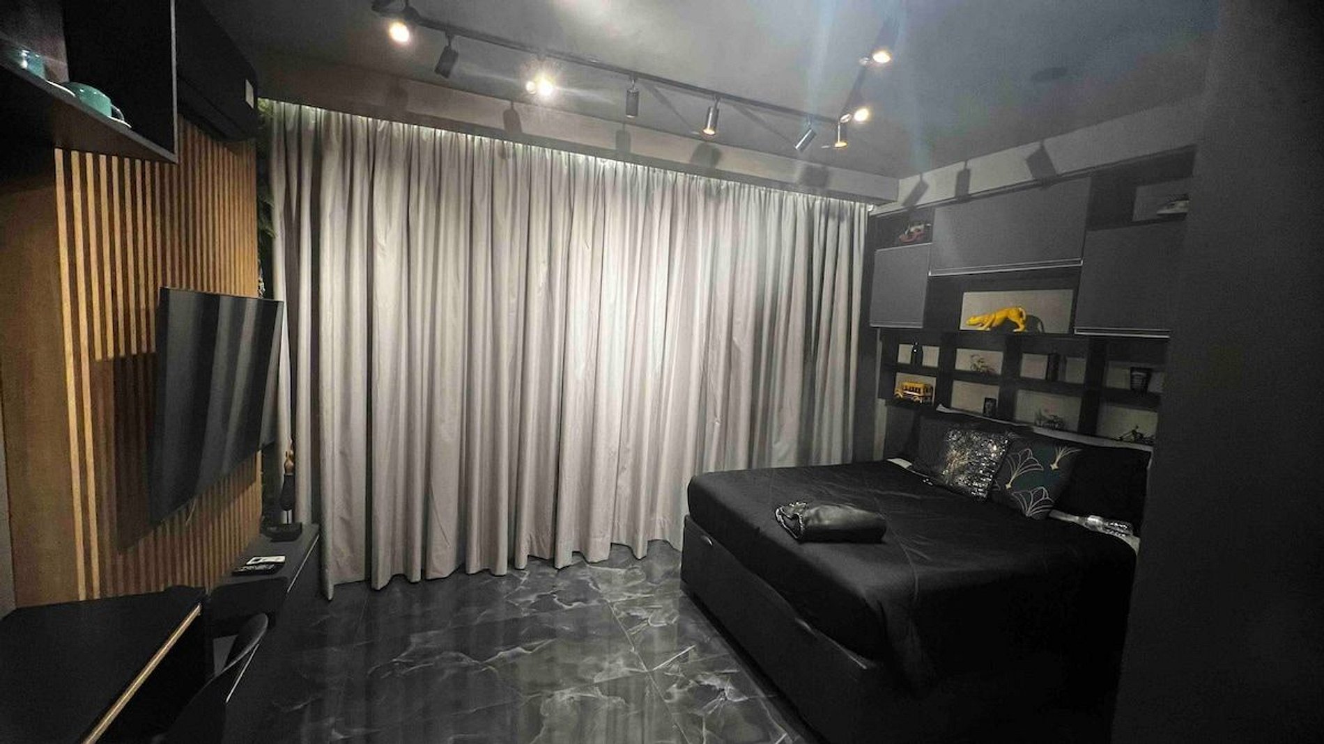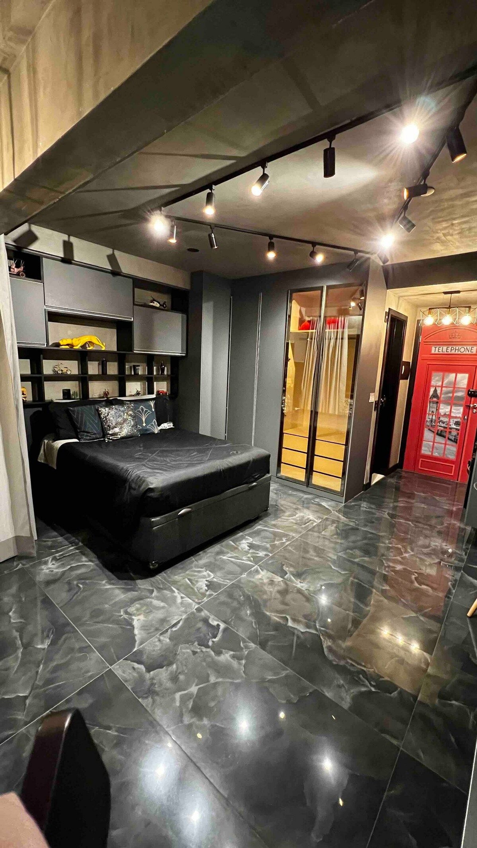 ᐅ Studio: cama de casal, roupas de cama, cortina blackout, Wifi 500Mbps, Tv Smart com canais a cabo e todos os aplicativos de streaming, ar condicionado split, fechadura eletrônica.