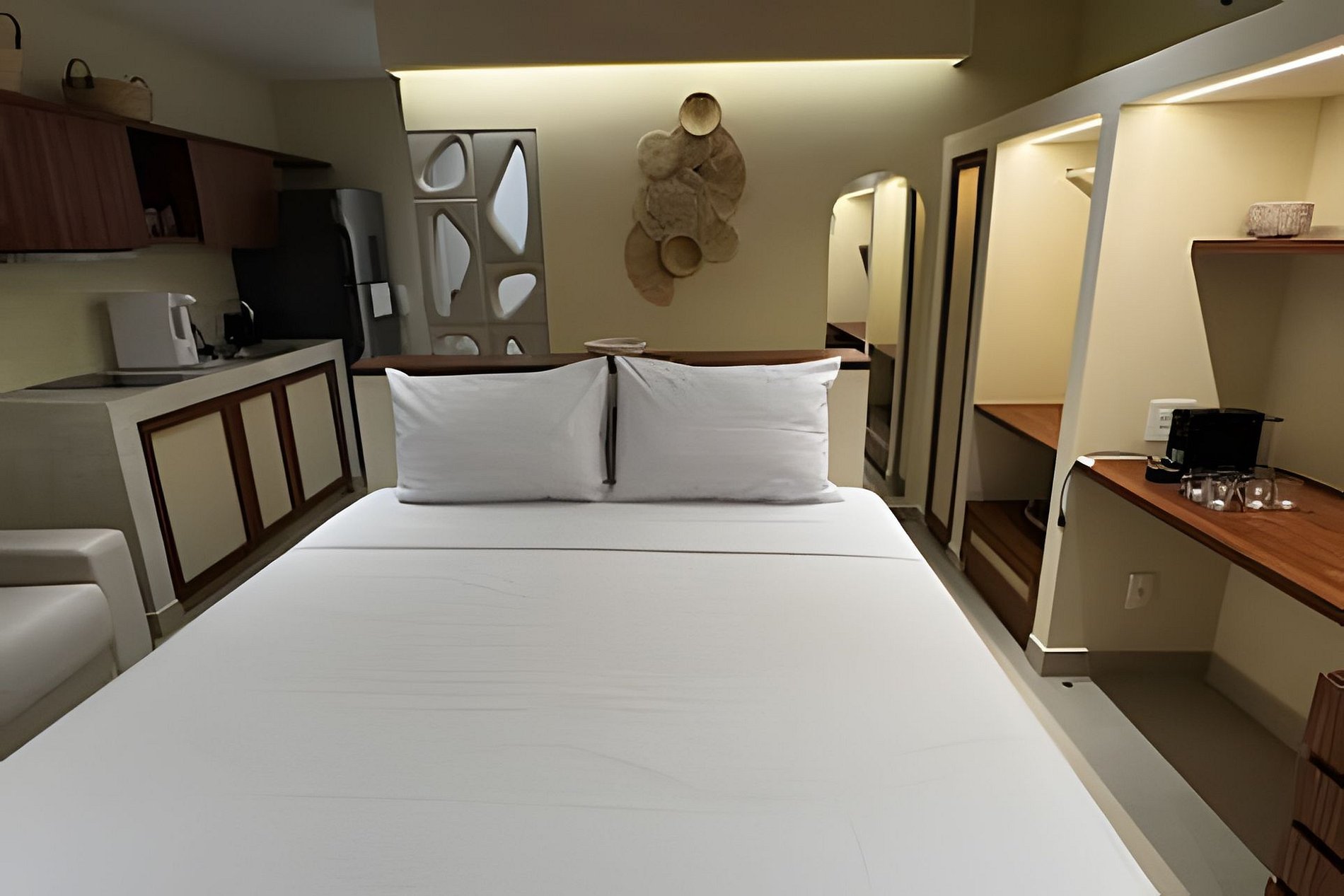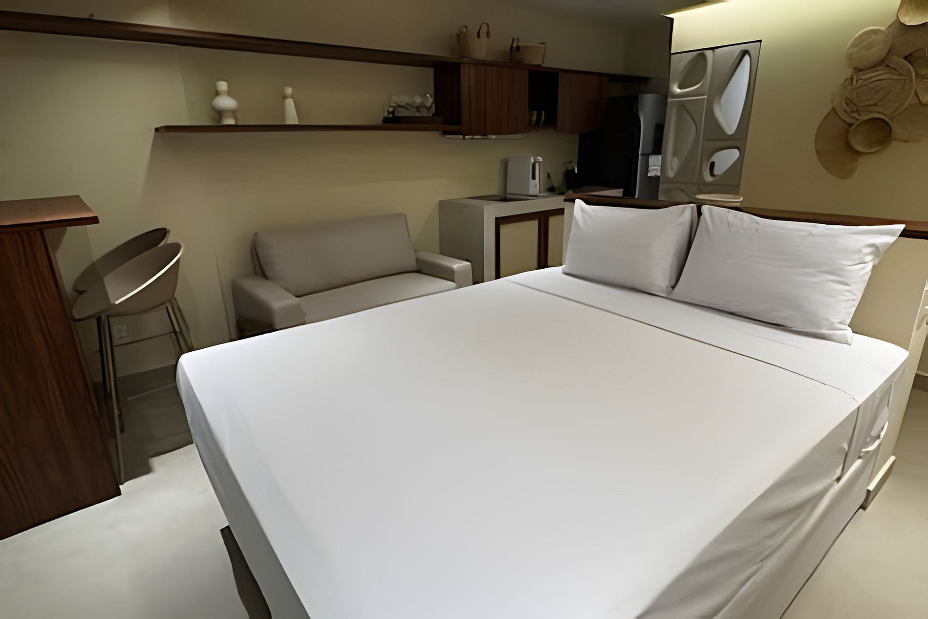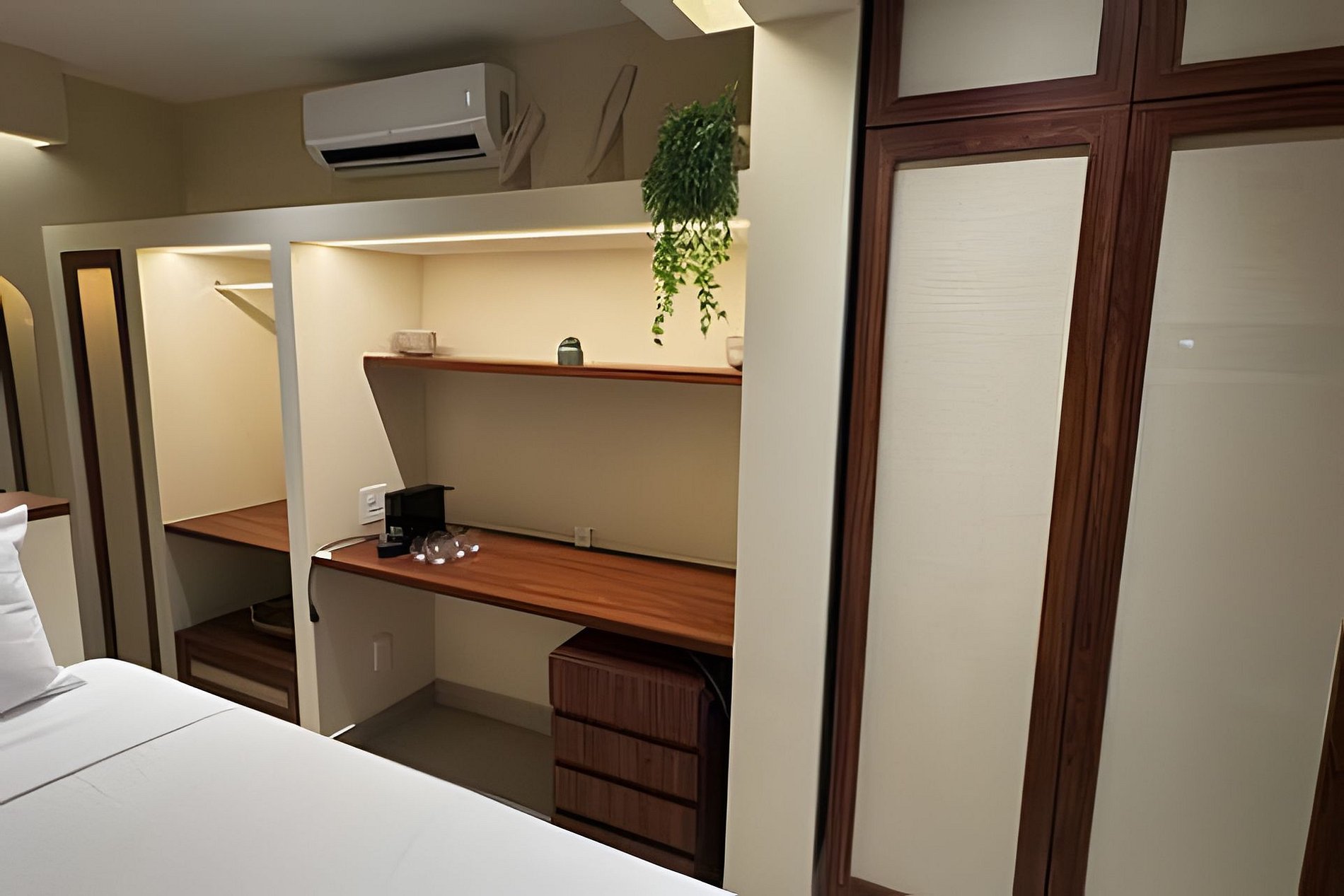 ▷ Studio: cama queen size, sofá, roupas de cama padrão hotel, cortina blackout, Wifi 500Mbps, Tv Smart com todos os aplicativos de streaming, ar condicionado split, ferro de passar ou vaporizador e fechadura eletrônica.