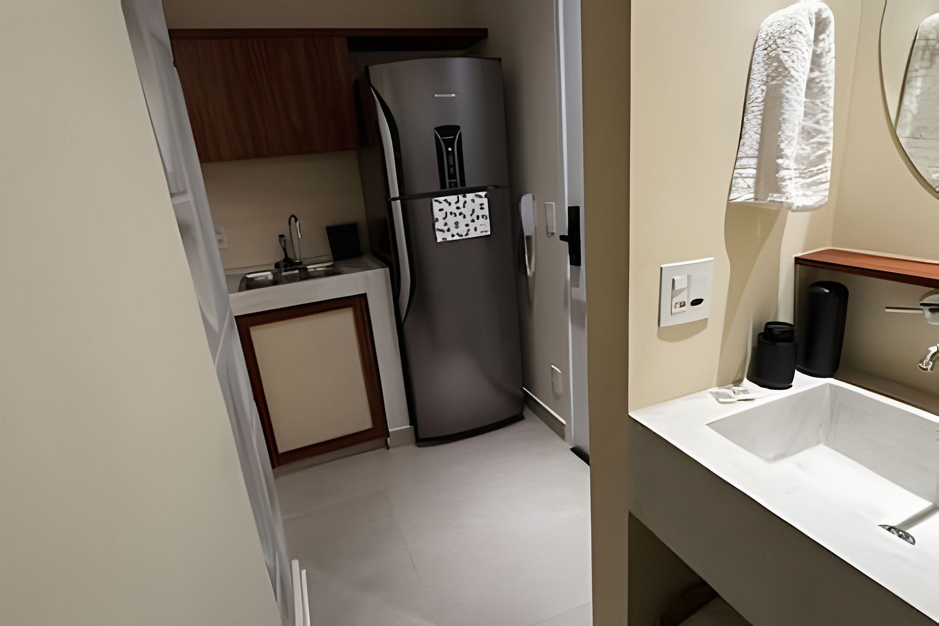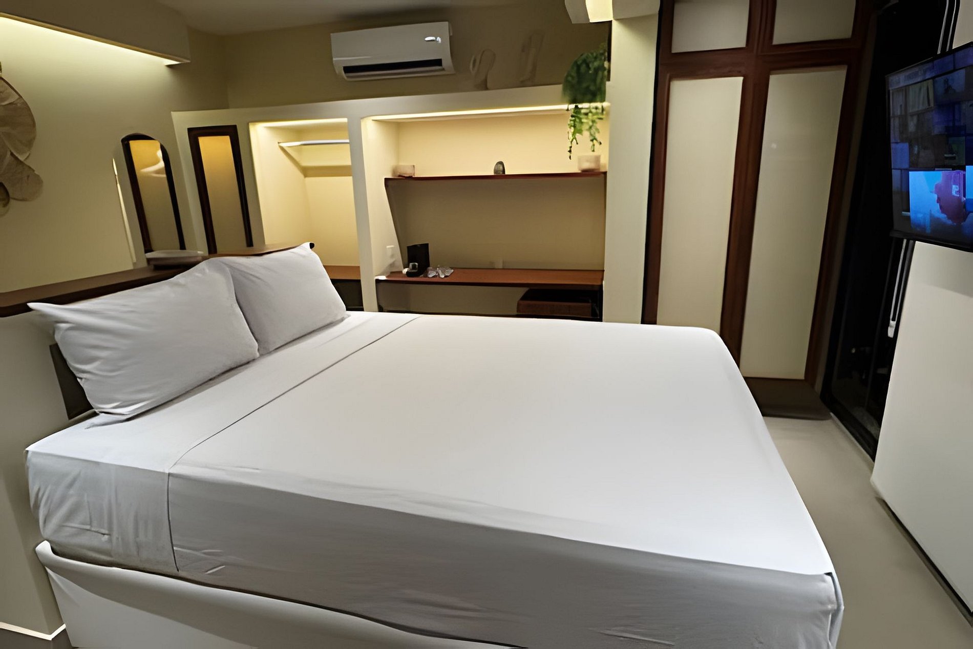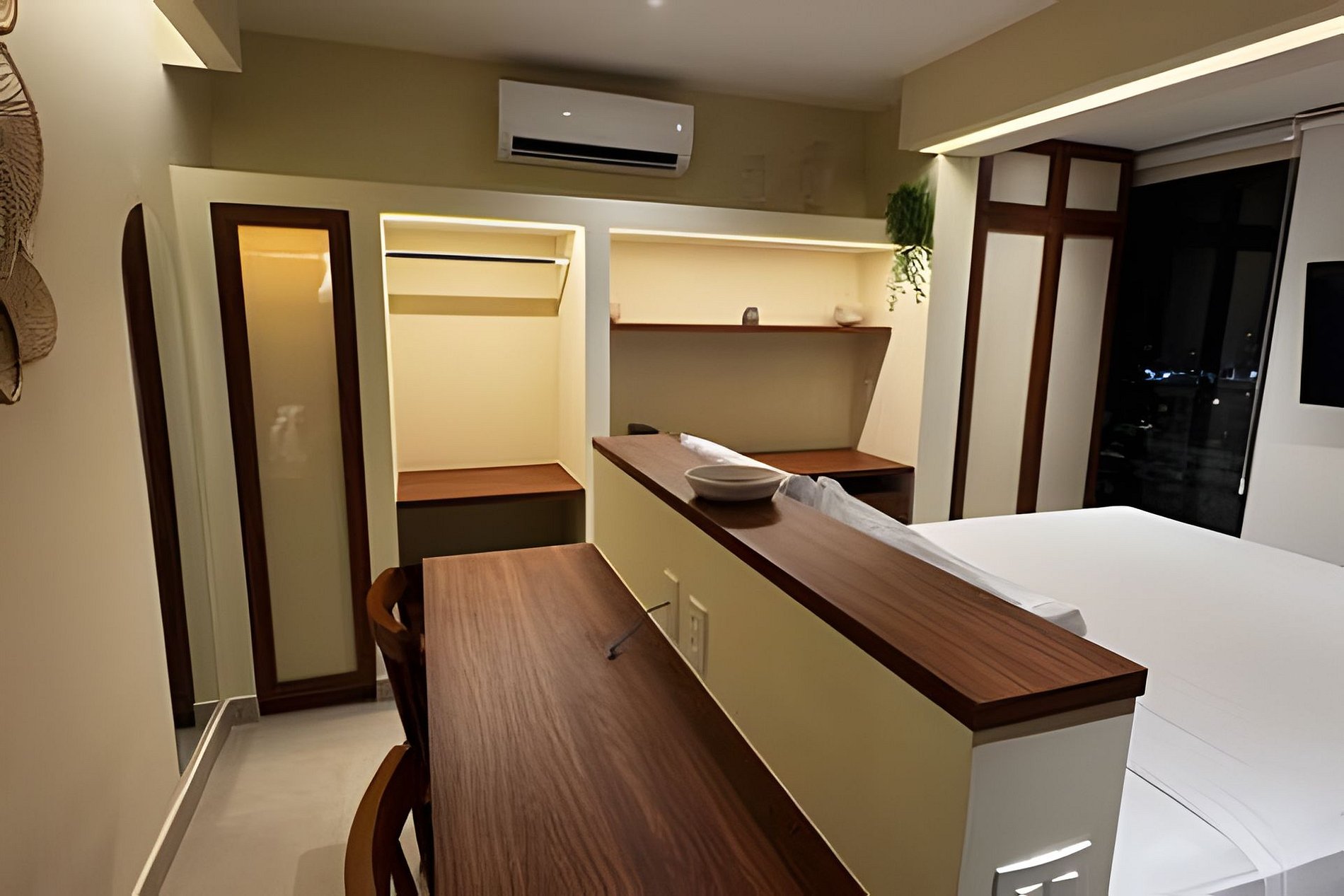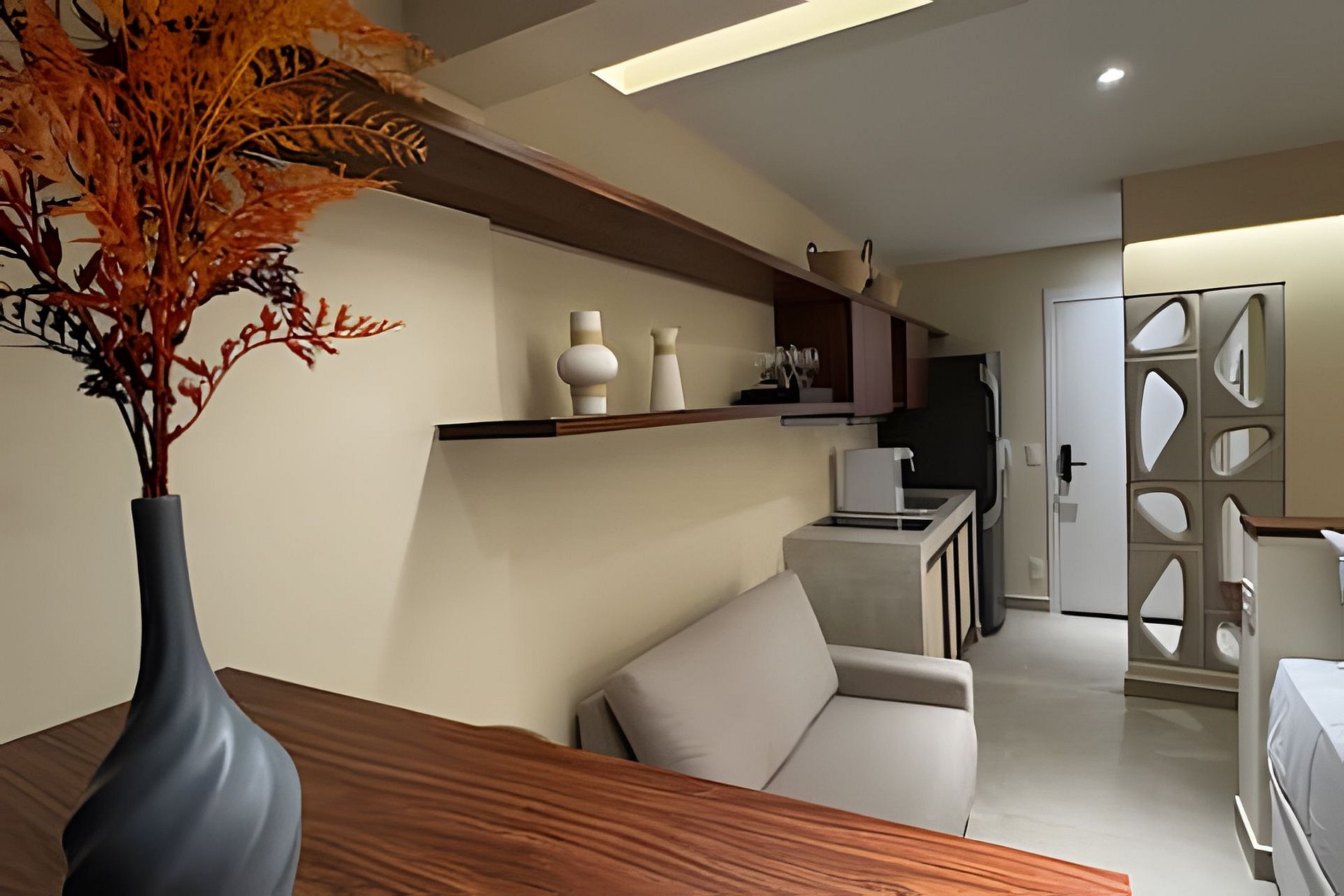 ▷ Studio: cama queen size, sofá, roupas de cama padrão hotel, cortina blackout, Wifi 500Mbps, Tv Smart com todos os aplicativos de streaming, ar condicionado split, ferro de passar ou vaporizador e fechadura eletrônica.