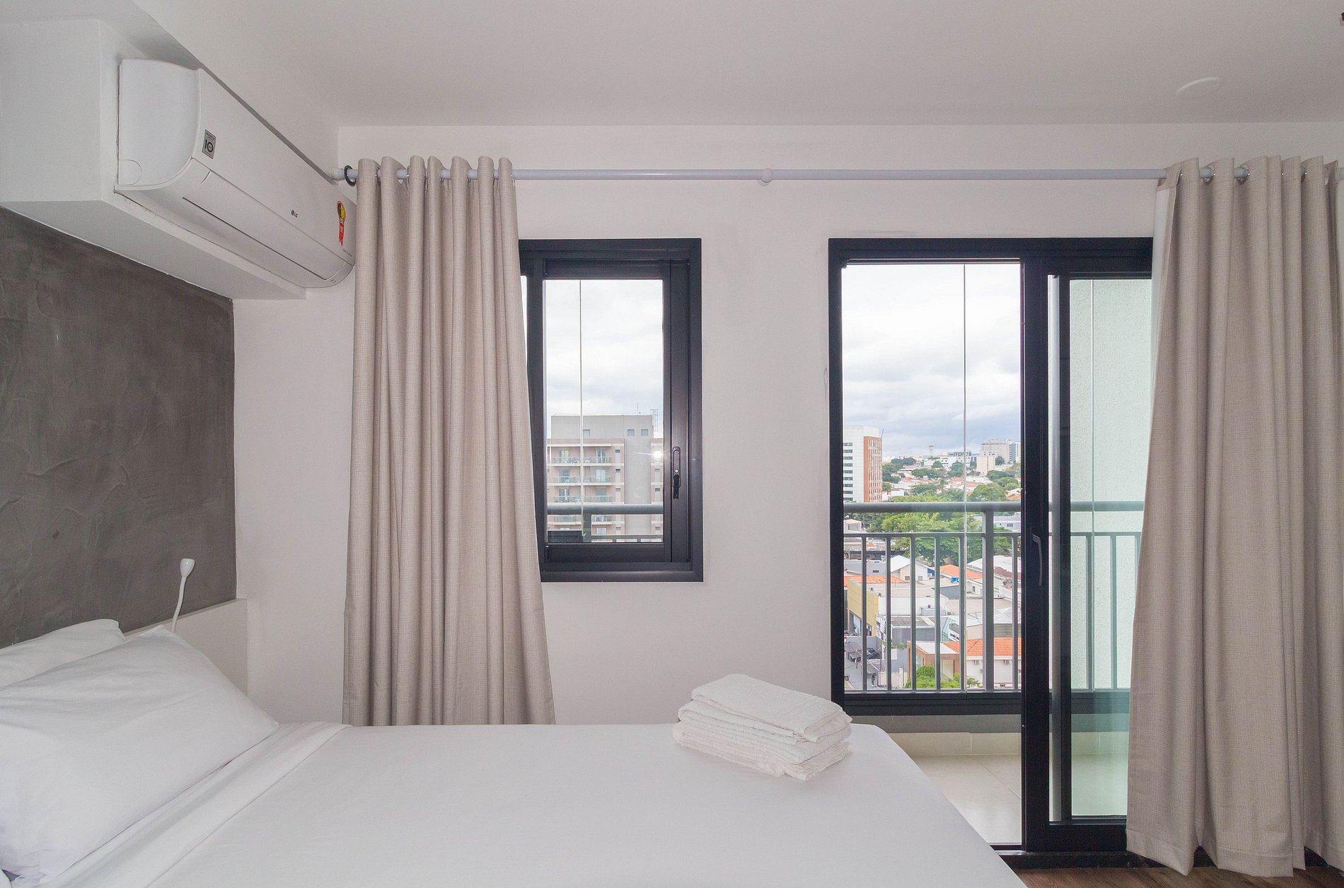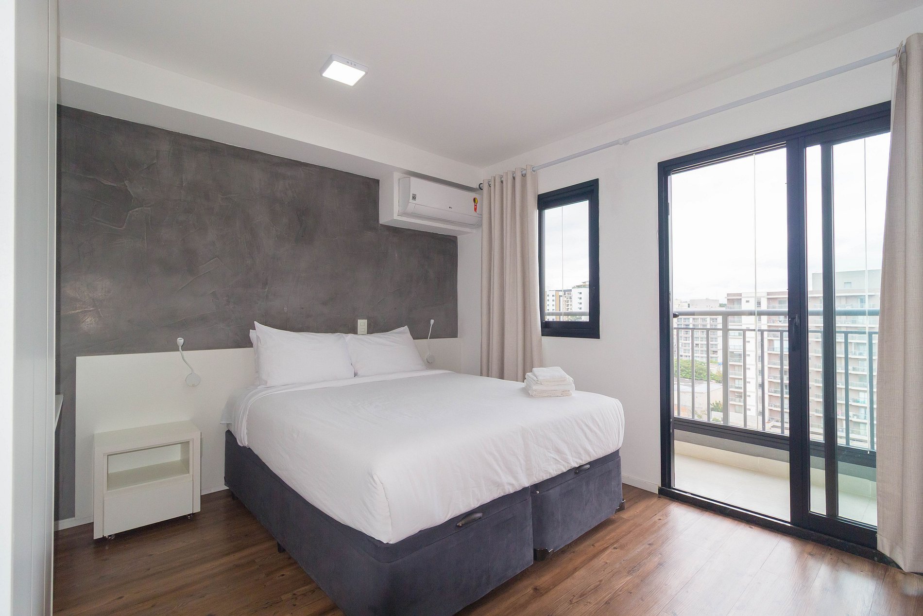 ᐅ Studio: cama de queen size, enxoval completo padrão hotel, cortina blackout, Wifi 500Mbps, Tv Smart com canais de antena digital e todos os aplicativos de streaming, ar condicionado split, fechadura eletrônica.