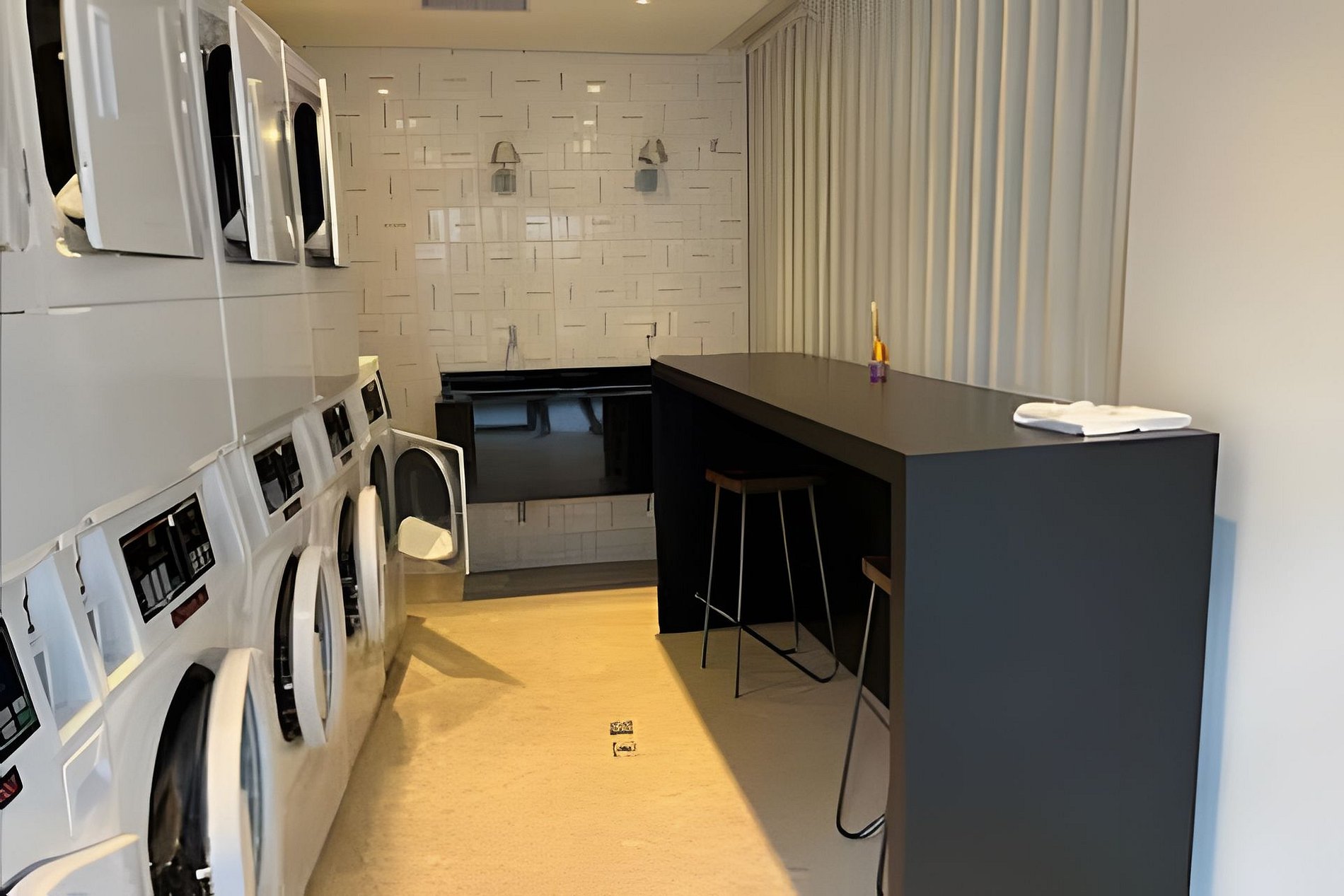 ᐅ Temos lavanderia OMO disponível no prédio, que poderá ser usada mediante a pagamento no app.