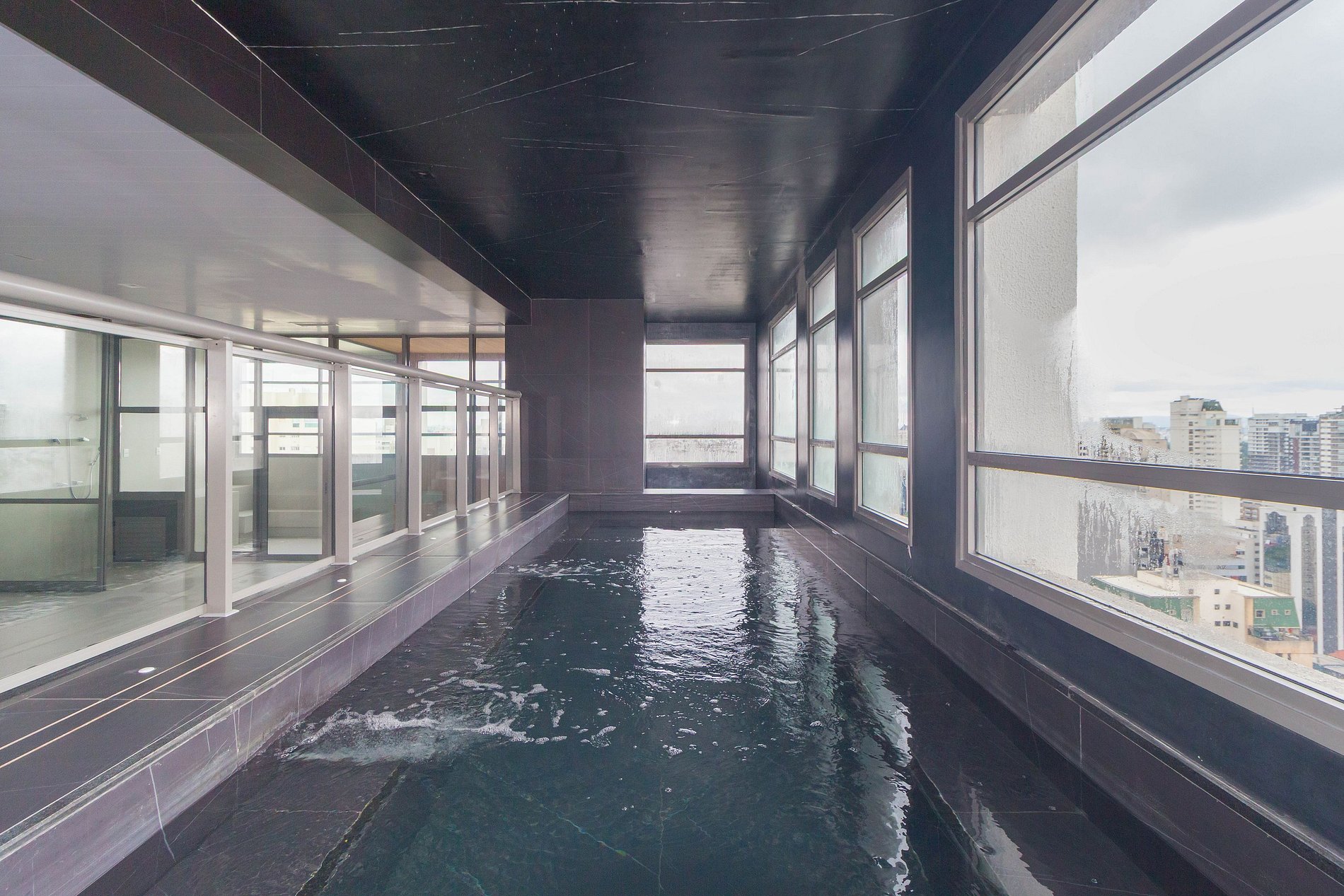 ᐅ Piscina aquecida com hidro e cromoterapia no rooftop