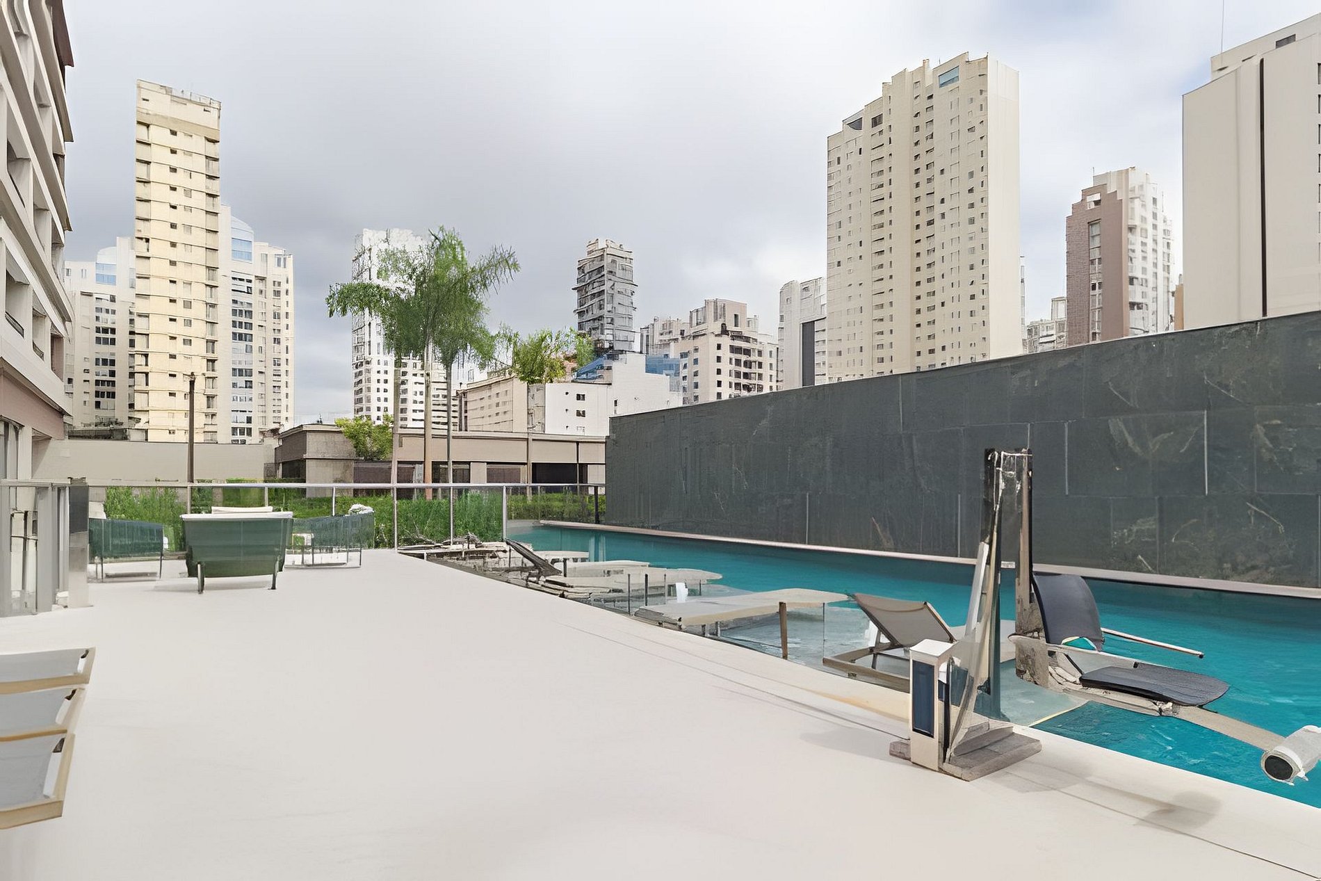 ▷ O hóspede poderá acessar todas as áreas comuns do prédio (piscina, spa, academia, coworking, livings, lareira e muito mais).