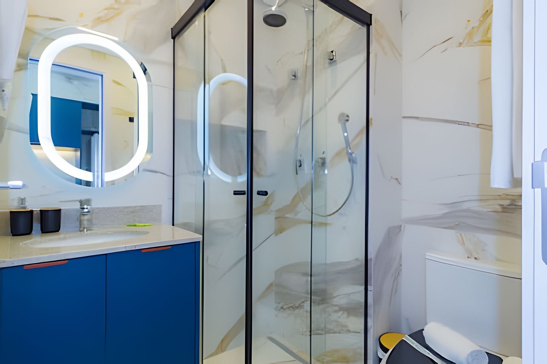 ▷ Banheiro: aquecedor, amenities, secador de cabelo e Jogo de toalha.